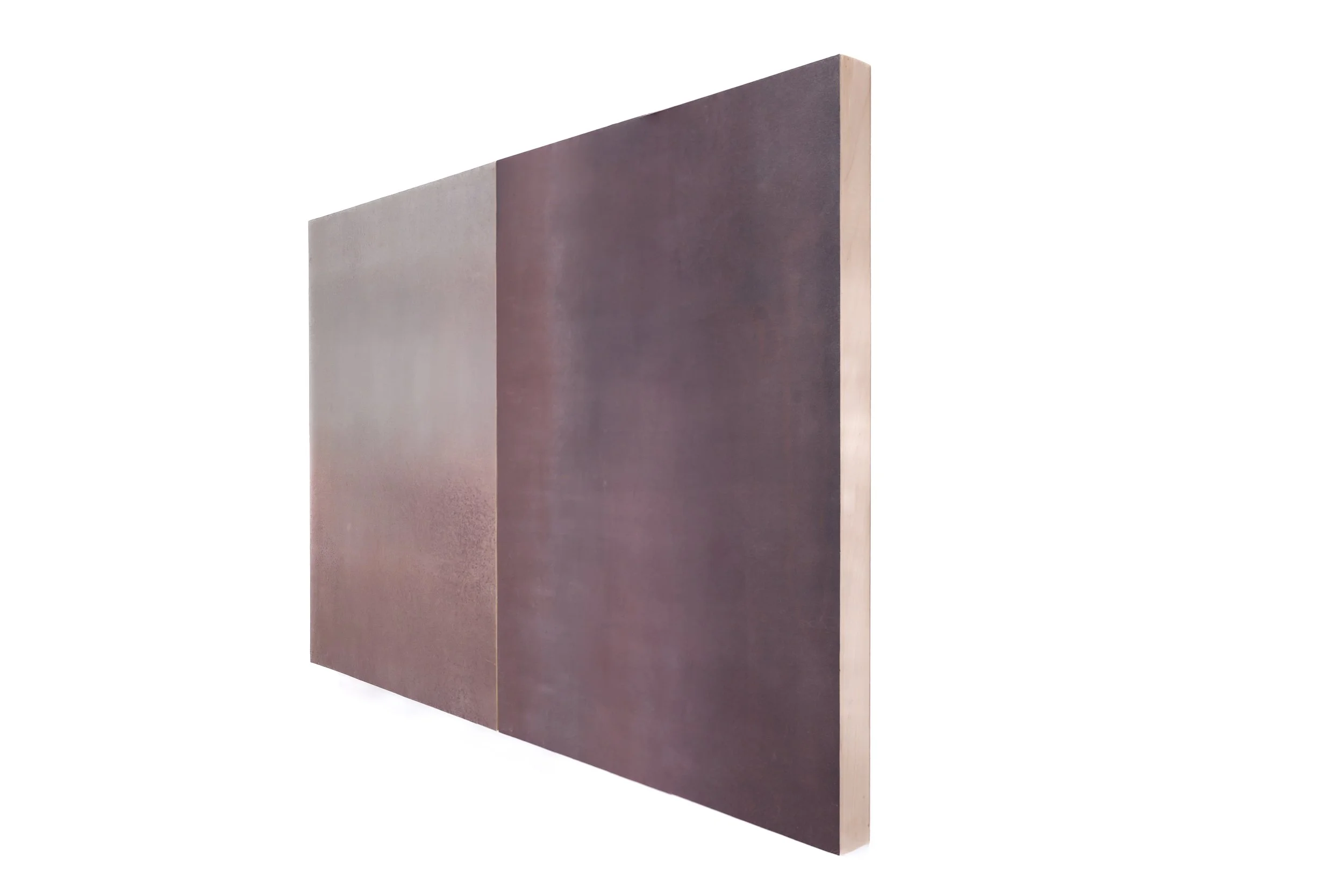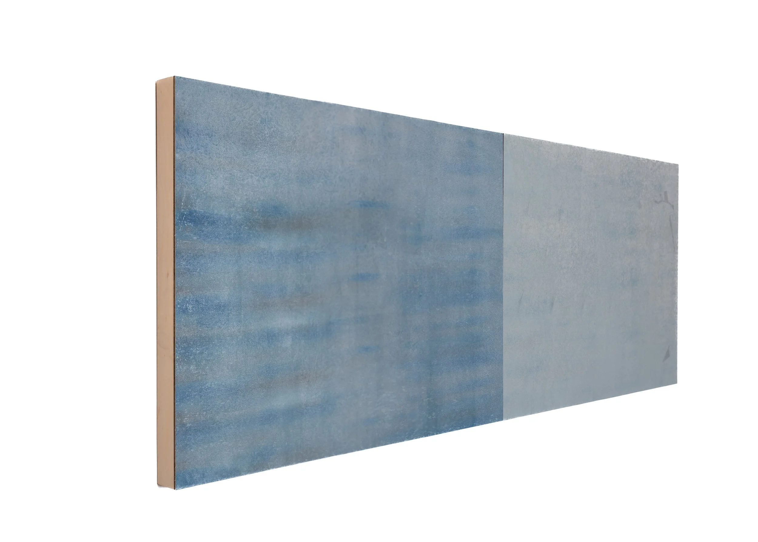 Layered monotype on Stonehenge, mounted on wood panel